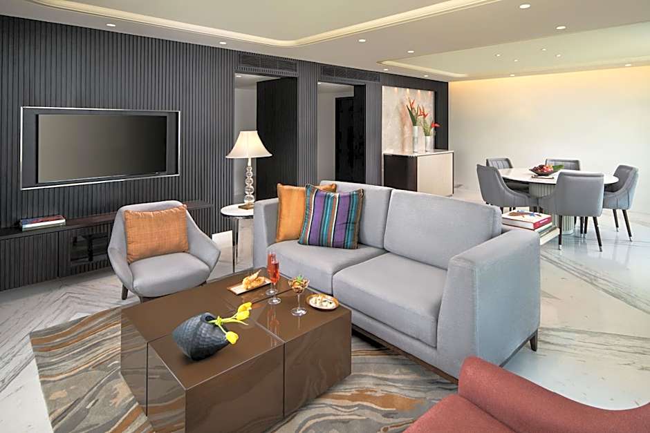 These spacious suites with a study, dining area, five-fixture bathroom with a spa bath and a lavish bedroom, offer fantastic views of the city – all foregrounded with the greenery of the hotel’s premises. The private balconies of the 4th and 5th floor suites offer a beautiful view of the city.
